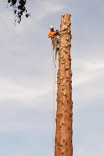 Speziell geschulte und regelmäßig geprüfte Baumpfleger mit SKT-A und B Zertifikat gewährleisten eine fachgerechte Arbeit unter Einhaltung der bestehenden Sicherheitsvorschriften. Pflege und Fällungen an schwer zugänglichen Standorten ist mittels der Seiltechnik durchführbar.